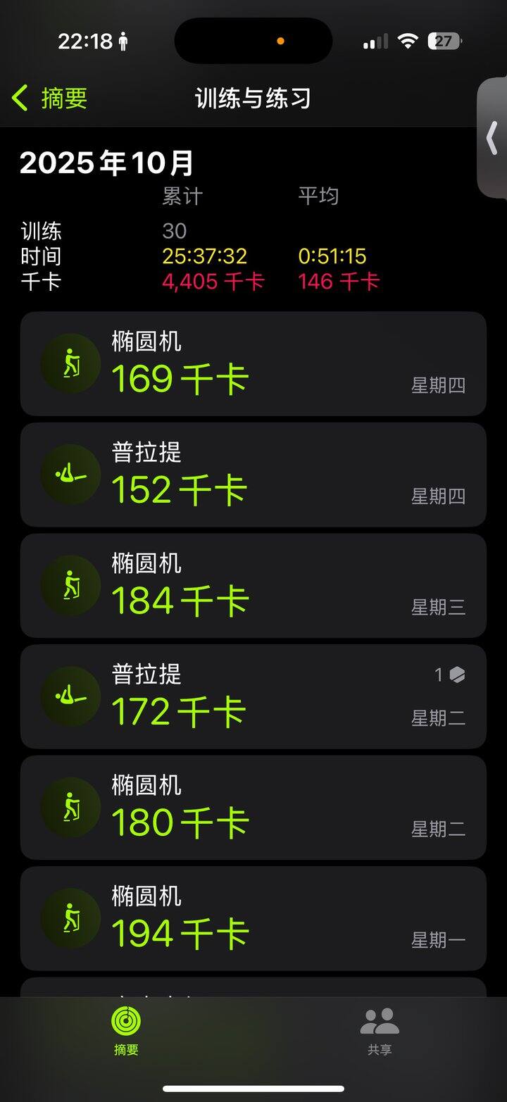 除了身体不适外,每天都会进行低强度运动:散步60分钟或椭圆机40分钟,另外两周两次普拉提训练。