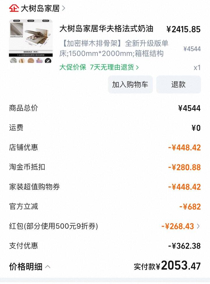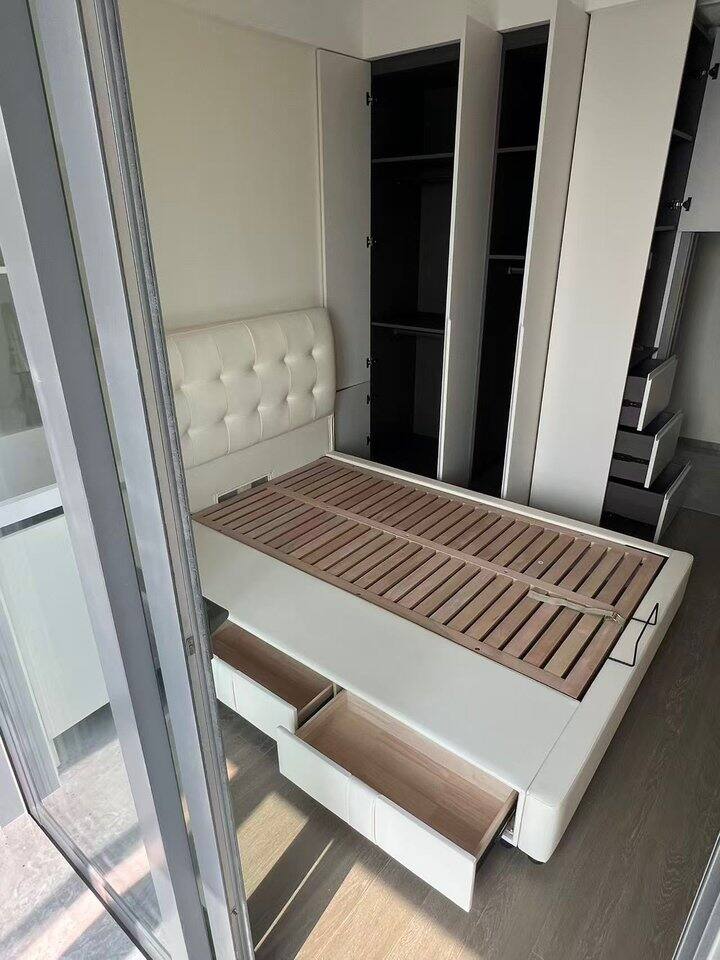 选的是榉木,带三抽+气压床板拉起来可以储物袋的