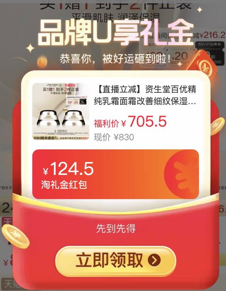 资生堂百优面霜50ml*2罐:https://s.click.taobao.com/Z76mlvp,领124.5元淘礼金,点击右上角进直播间加购1件;