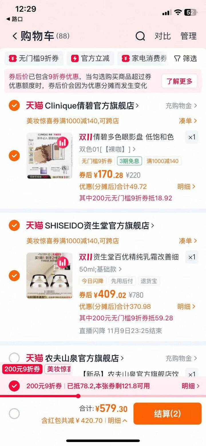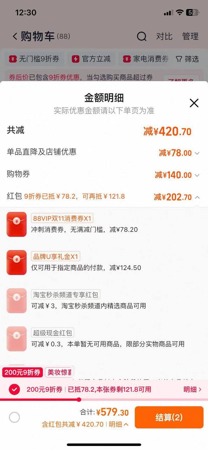 百优叠加88会员9折消费券到手409.02,折207.5/罐;