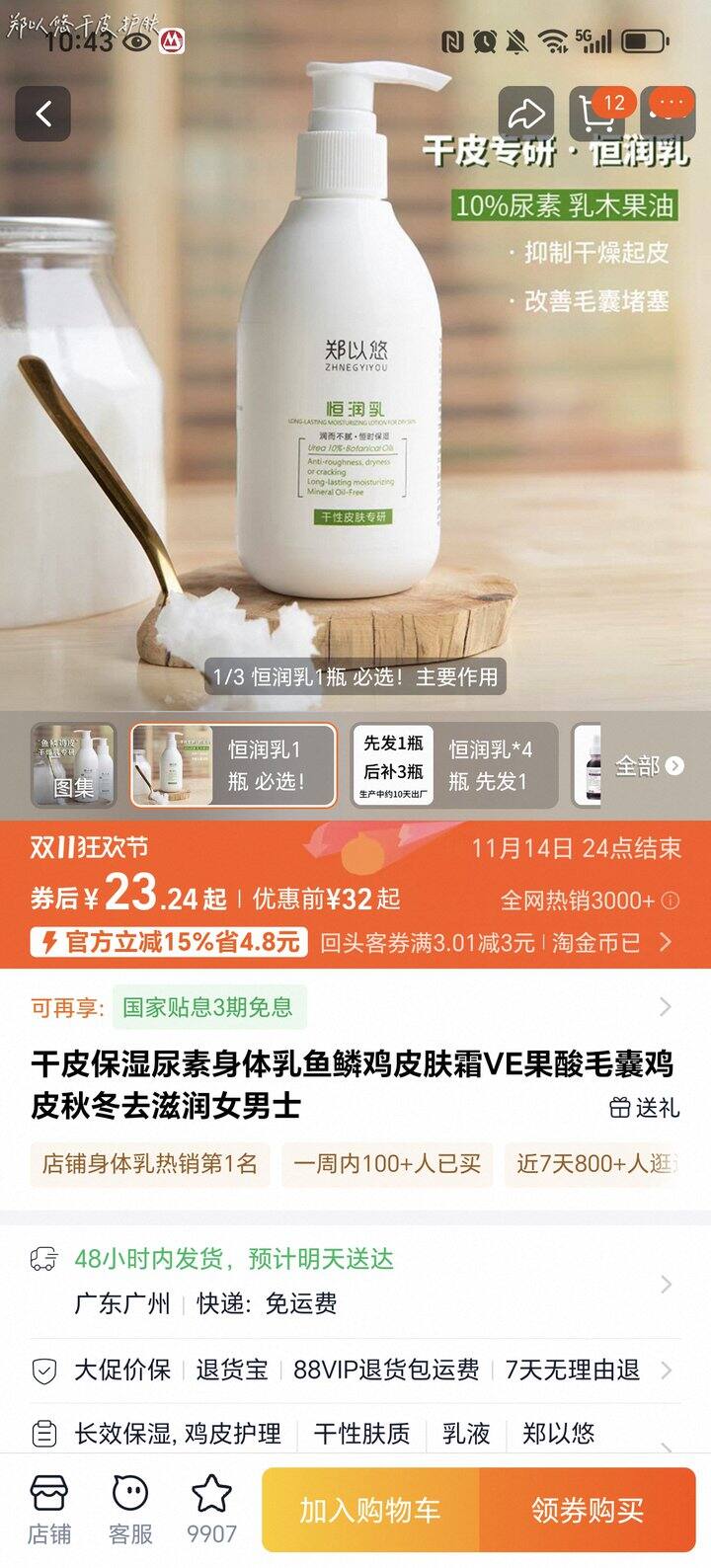 身处广东常年湿度80%以上,但依然是大干皮。大干皮用了这款身体乳很长时间了,一般不是极致干的情况下,用这个不油腻,好吸收,也不起皮,我觉得挺不错的(湿度特别低的情况下,用这个也不行)。就是这个瓶子按压设计用到最后很难按出来,需要把瓶子倒过来静置,用手指挖出来,比较麻烦。