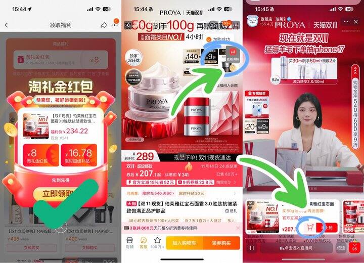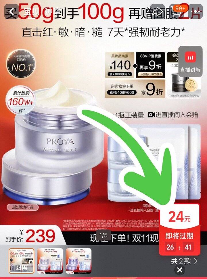❸珀莱雅领8礼金🧧,看图进直播间加购多送两片面膜