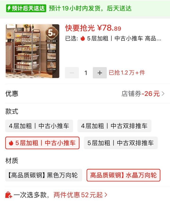 这个博主的是:五层 抽拉式 ➕水晶万向轮