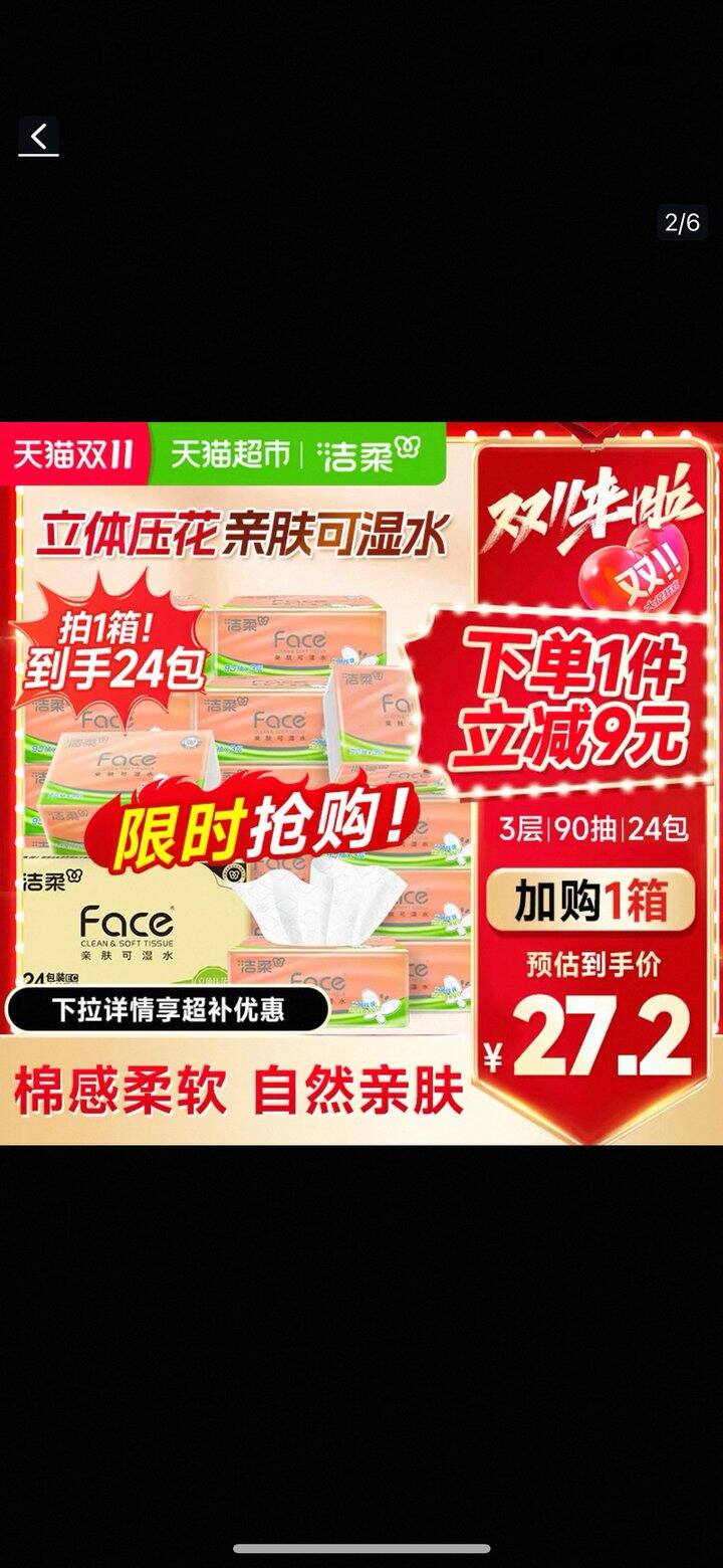 洁柔抽纸90抽24包付款15块多~一包不到0.7元