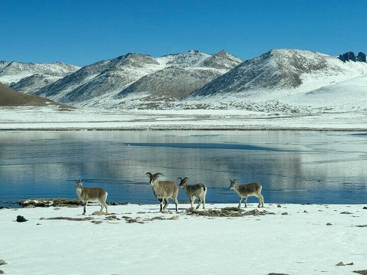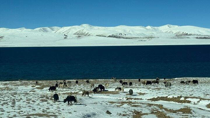 经过打加措、朗措,看到了岩羊、藏野驴、牦牛、家羊