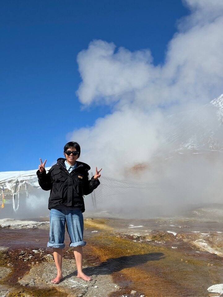 路遇达格架喷泉(喷的温泉),赤脚走在海拔 5000 米高原上,真好玩!