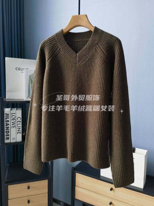 绝美!老友珍惜收!!高克重纯羊毛针织衫女V领长袖宽松慵懒毛衣