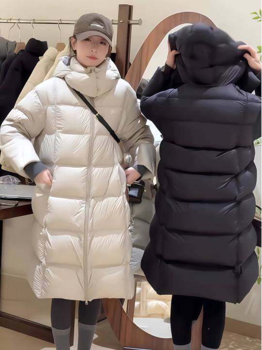 超好看长款过膝羽绒服女2025年新款加厚连帽白鸭绒小个子保暖外套