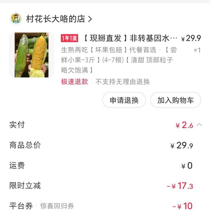 拼夕夕买过那么多次云南金银玉米🌽,这次小红书📕买的最好吃,真划算,超级甜,一次炫了三根,再回购价格就没这么便宜了!!多送点卷啊!