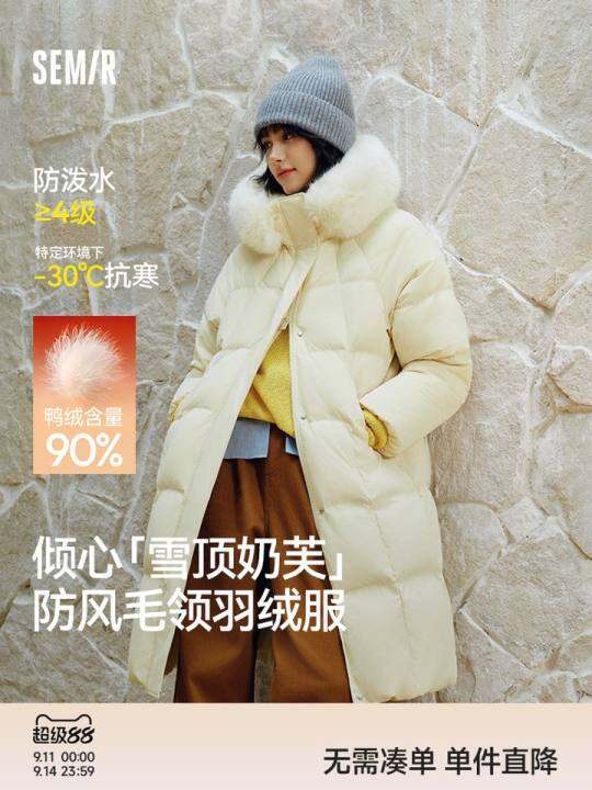 森马羽绒服女冬90绒子长款彷狐狸毛领分割插肩袖2025新款上衣外套