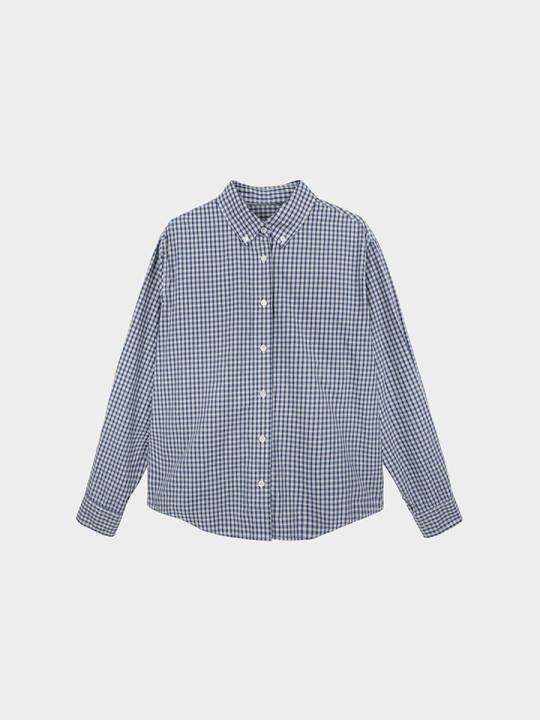 Miss couleur覆古长袖蓝色格子衬衫女秋季宽松上衣外套MC034