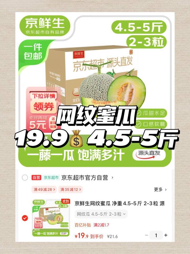 京鲜生网纹蜜瓜!💰3+/斤