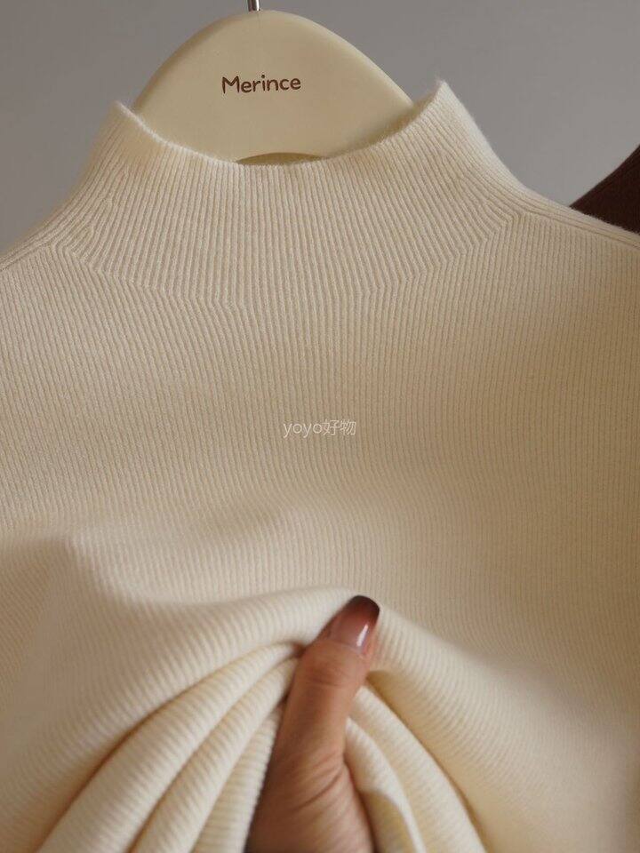 女士无缝一体蚕丝羊毛半高领毛衣!💰49.9