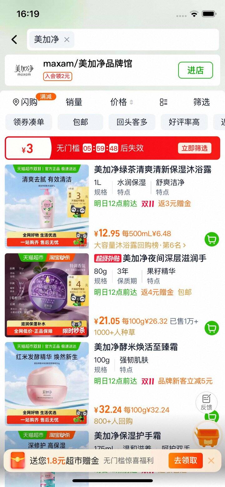 2️⃣猫超首页🔍美加净,个护,好礼多多