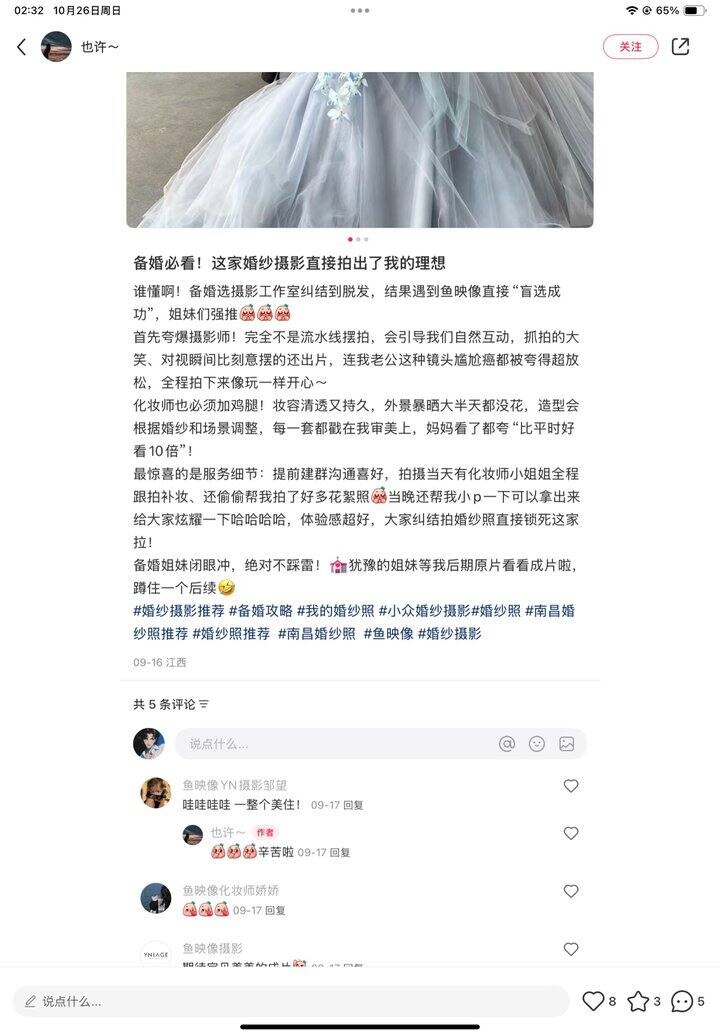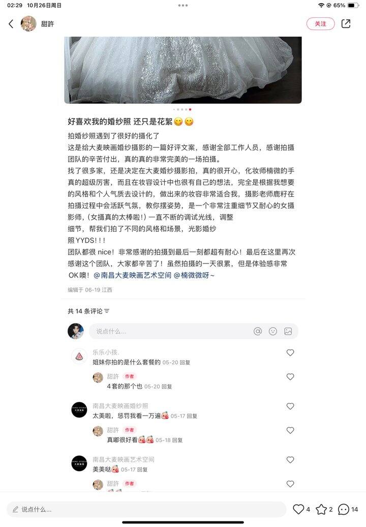 就是我在小红书搜当地的婚纱照,有很多很多顾客写的各种好评,发表小红书,刚开始看头几个我还觉得这家挺好的,但是看多了以后发现这好评也太多太多了,全都是顾客写的,我觉得也不能那么多吧,是不是刷的,这些好评可不可信呢?有没有拍过婚纱照的姐妹知道这是怎么回事