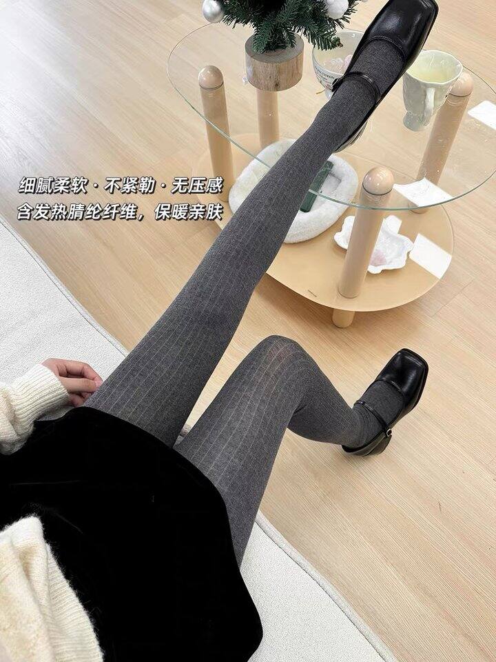 自带脚型针织打底袜,miu系穿搭首选,灰色系质感超温柔,条纹设计,显瘦的同时更加立体有质感,柔软轻压,服帖的同时舒适无勒感~四个颜色,奶白深灰浅灰黑色,满足搭配所需;微透不加绒,建议春秋穿着