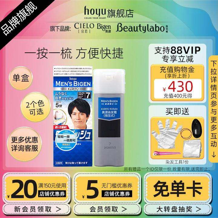 hoyu美源染发剂日本遮盖白发男士染发膏黑色按压便捷