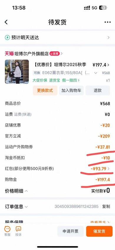 ❹看图从淘金币加购抵扣10r