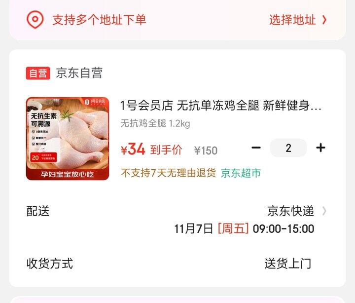 1号会员店 新鲜健身蛋白烤鸡腿炸鸡腿净重2.4斤