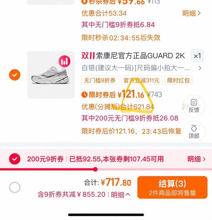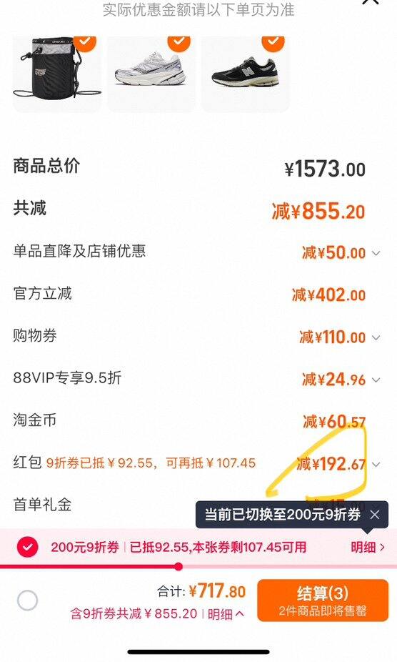 1300-110运动券➕9折券➕1000-100店铺券➕淘金币➕淘礼金