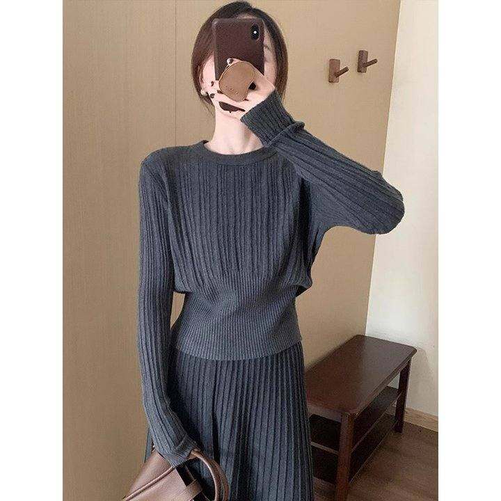 收腰针织衫女软糯肌理感毛衣秋冬休闲时髦长袖内搭极简风打底上衣