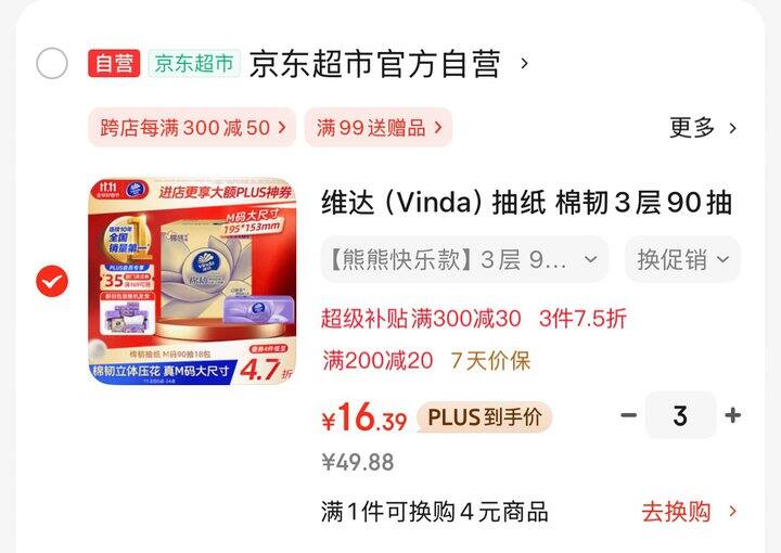 维达抽纸 棉韧90抽m 码💰0.92/包