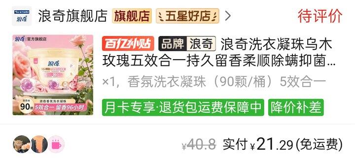 90颗,量超大,价格实惠,之前看测评浪奇洗衣液不错,刷到洗衣凝珠优惠买桶试试
