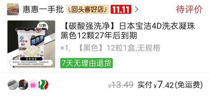 11g的大颗粒,现在很多洗衣凝珠都是7、8g的小颗粒