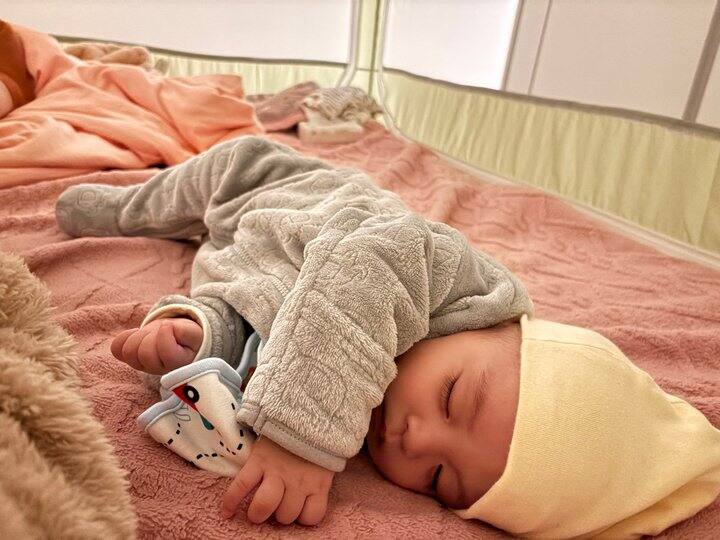 抖音一家直播买的婴儿毛毛连体衣可爱抱着毛绒绒的