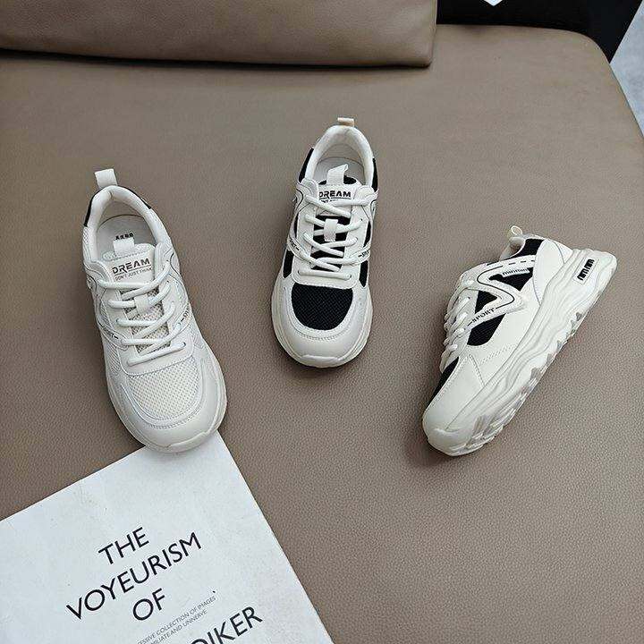显脚小真皮老爹鞋女2024新款厚底超轻便系带运动休闲鞋小白阿甘鞋
