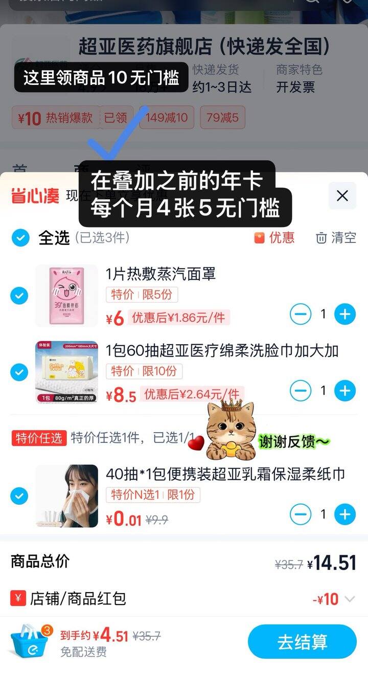 ❸店铺10商品卷+之前年卡每个月的5无门槛