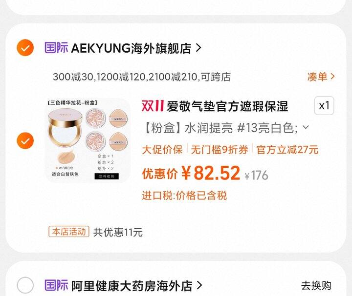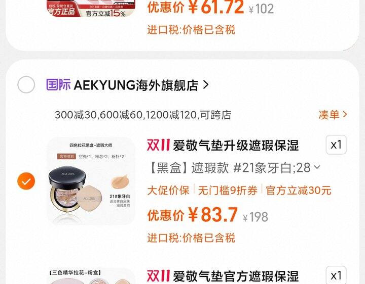 1、爱敬气垫官方旗舰店遮瑕持久不脱妆干皮水润防晒粉底控油正品https://m.tb.cn/h.Sq4v7dj弹6.9礼金