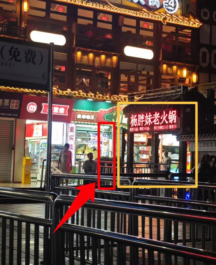 下面这张图「杨胖妹老火锅」左侧小路进去就是2 个电梯。2 个电梯左侧进去还有一条小路,里面是备用电梯,那边人少一点。