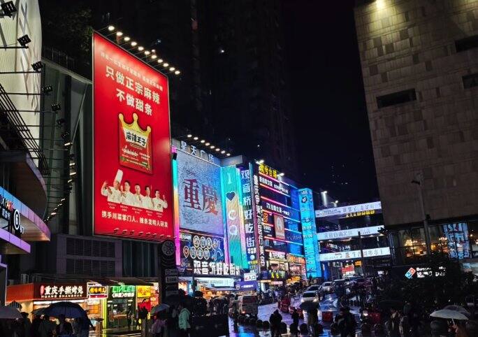 然后洪崖洞内部普遍不建议消费,就是楼上坐楼梯直达最下面,拍拍夜景,看一看。