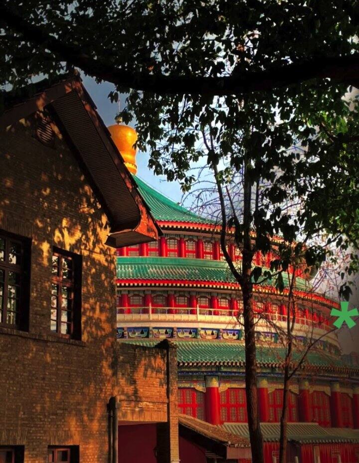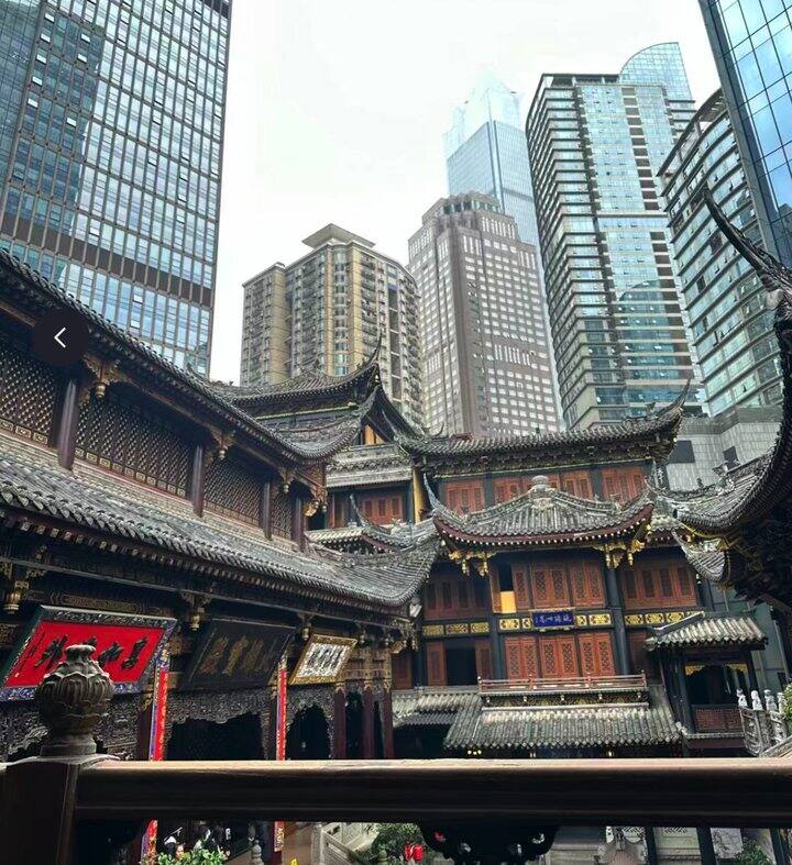 外面的广角可以看到罗汉寺和背后高楼的反差。