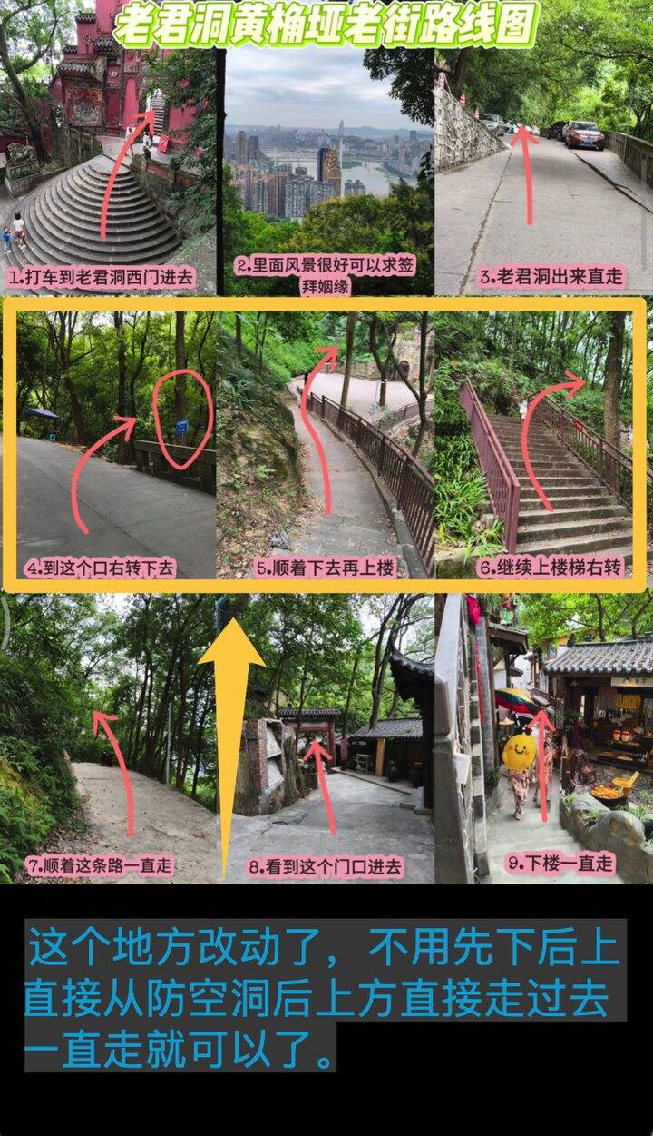西门就不累,而且西门看完三清殿出来后,防空洞后面那条小路就能直接到黄角娅街区。非常方便。