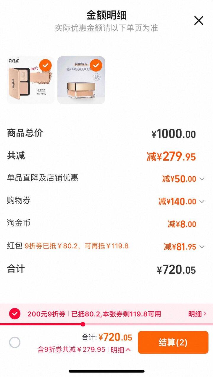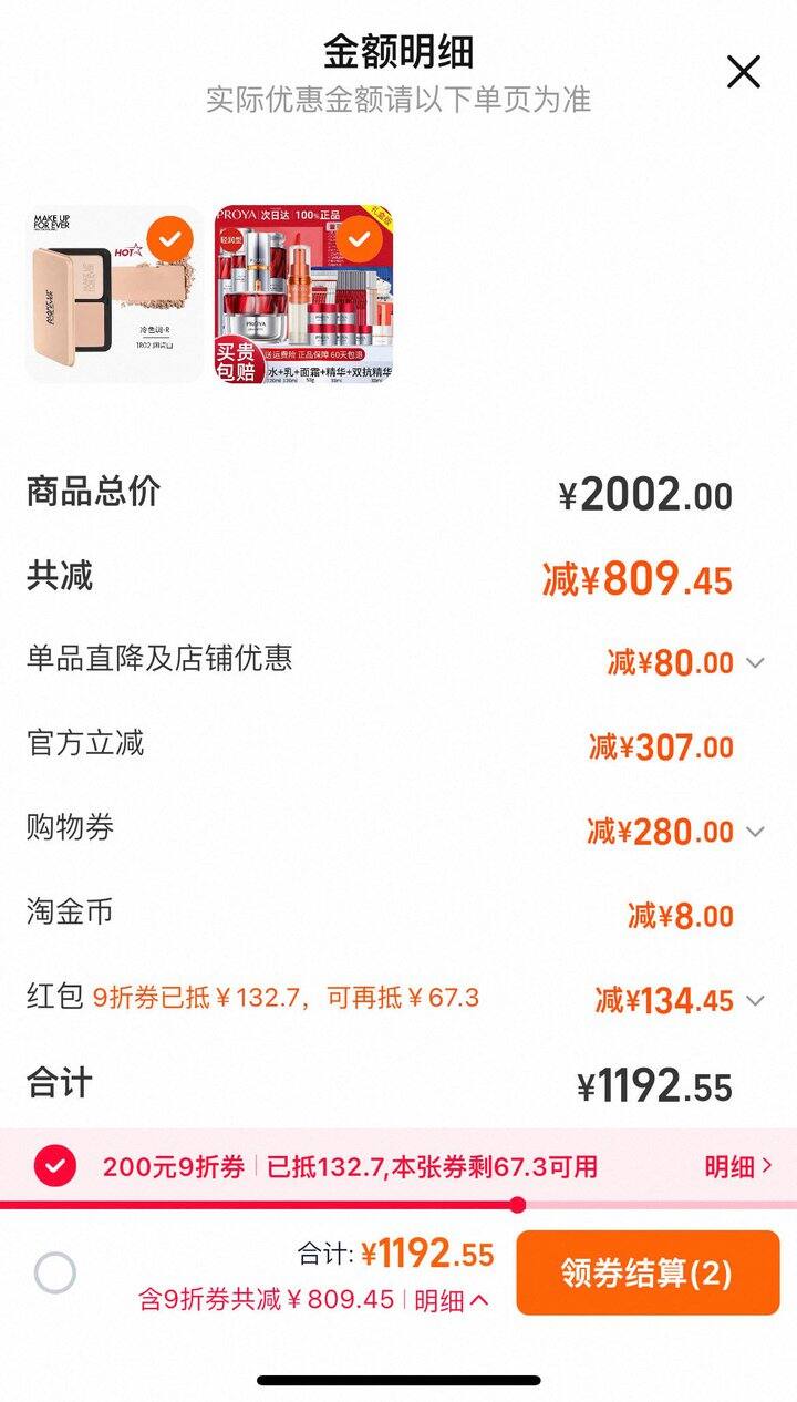 2000-280美妆券凑单拍一件后退