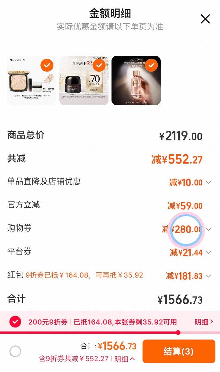 2000-280美妆券凑单拍一件后退