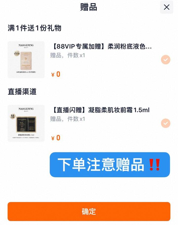 直播间加赠粉底液➕妆前霜