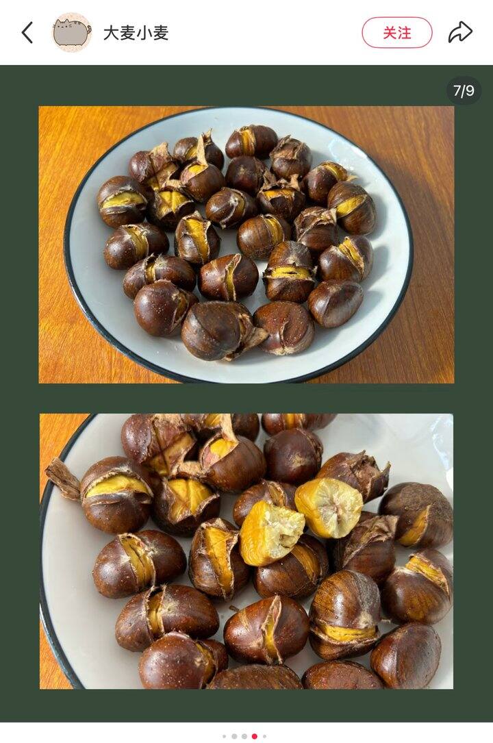 4,空气炸锅烤板栗,200度烤10分钟。烤好的板栗很粉糯,就是好多人追求的干粉噎人的口感。