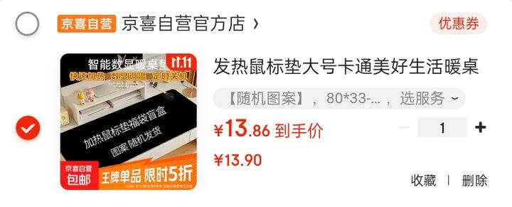 13.9元 加热桌垫 80*33-3档定时款(随机)
