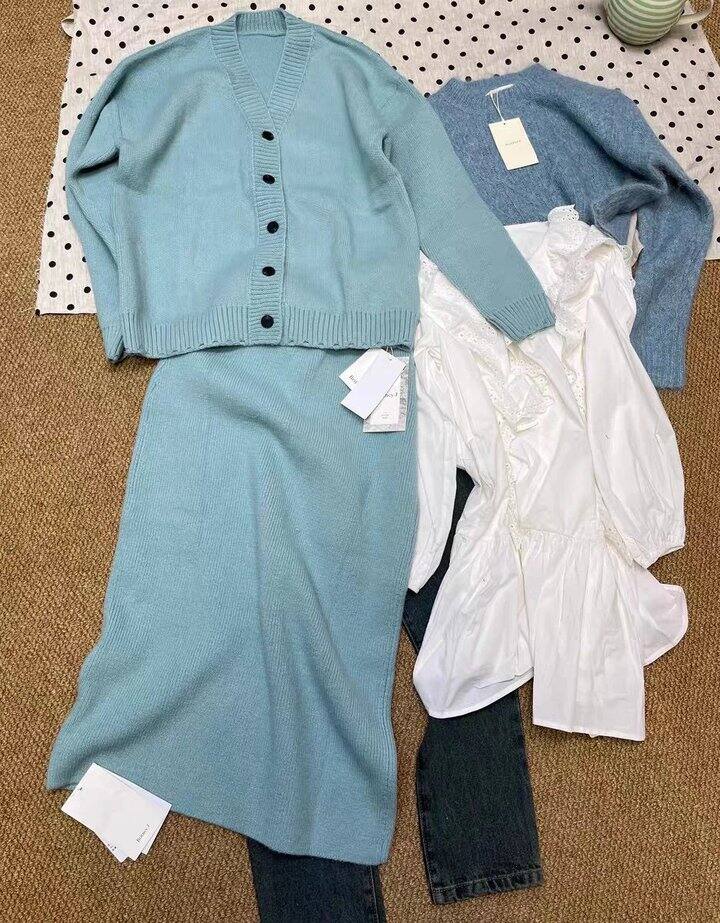 非常非常厚实的一套,不单出了,因为一套更好看。上身不扎很舒服很暖和,是那种比较亲肤的面料,小君君家质量还可以的,南方现在穿正好,北方可以当内搭。一套都是S,具体可以看尺寸,这套蓝色非常显白,喜欢的路口姐妹55(非偏)带走吧