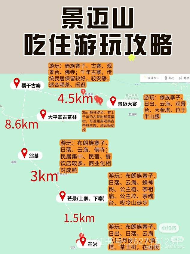 ☁️景迈山是一座茶山,纳入世界遗产名录,特色之一就是家家户户种茶卖茶,另外就是看云海或者日出日落。网上一般建议住芒洪和芒景,不过我们玩了两天的感受是,看日出日落的话首选芒洪,其次芒景,看云海的话都可以看,每个寨子基本都能找到看云海的角度。1⃣️第一晚住在景迈大寨的玉掌门民宿,老板娘特别和气,讲话慢慢的,早餐做的很好吃,晚上还陪我们喝茶聊天。房价淡季三百多五百多,旺季也要一千多。