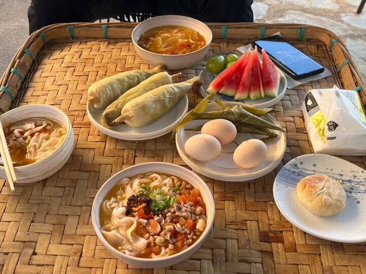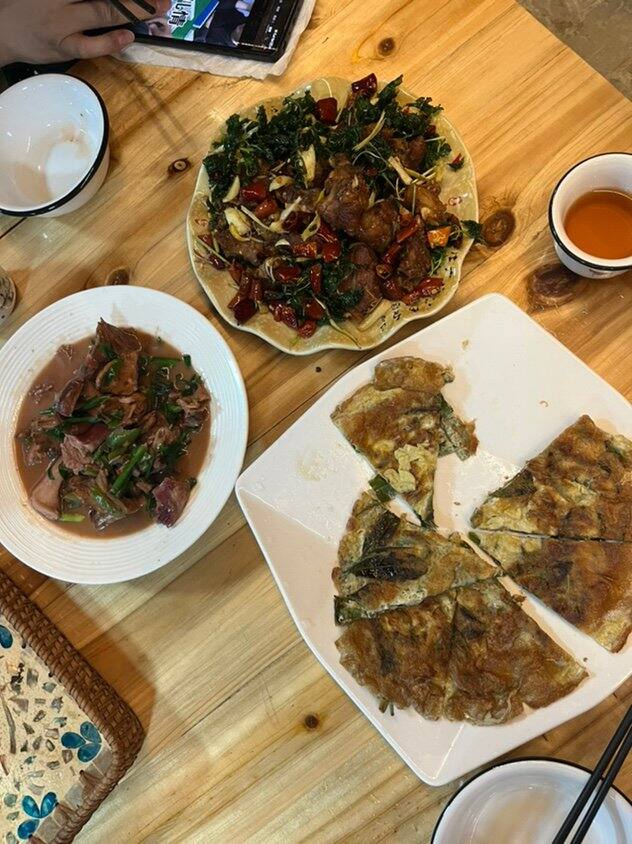 🍴晚上在寨心100号吃饭,本来去布朗人家还是啥的,网上推荐的,但是淡季没营业。点完菜,老板说有今天新采的蘑菇,就加了个菜。但是很奇怪,在山上吃了两次炒蘑菇,都是那种渣渣的口感,我不喜欢。