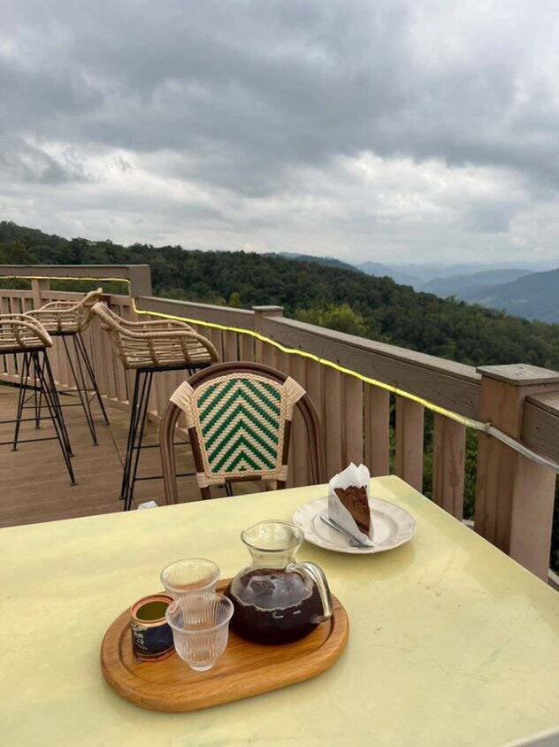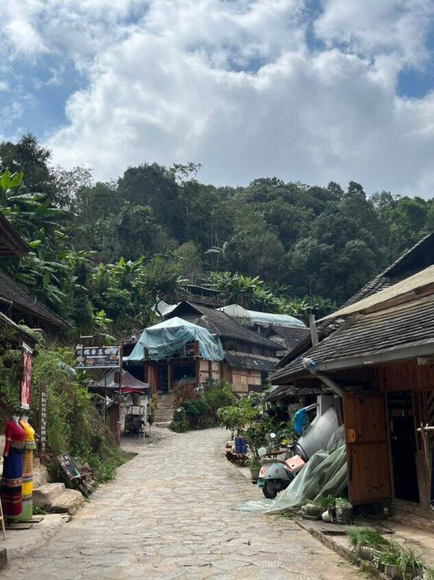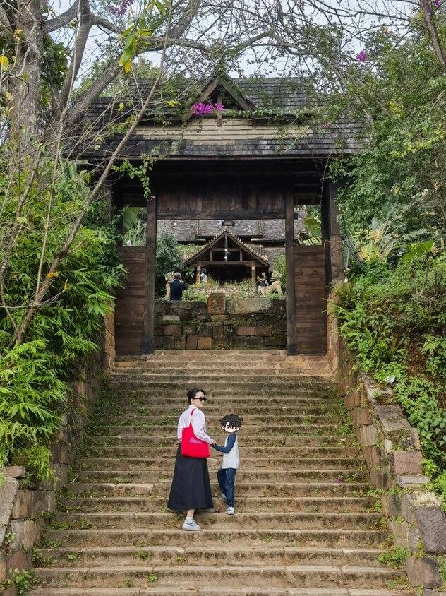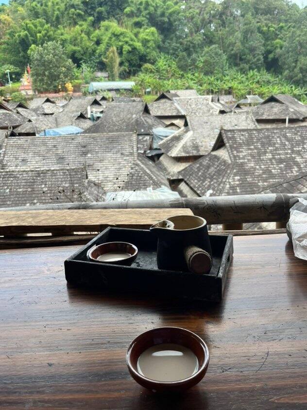 2⃣️第二天我们换到芒景住,是一家新开的民宿,整体风格更像酒店。白天我们就一路逛了山上的几个寨子。☕️网红的北归咖仓,距离景迈大寨很近,这里也适合看云海,不过那天早上有点阴天。