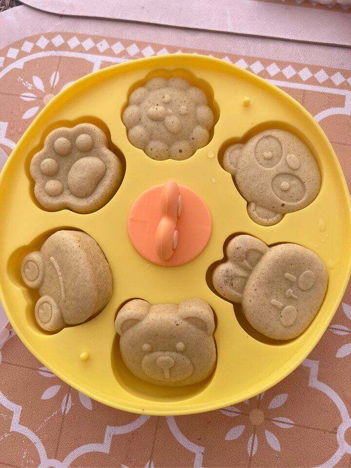 再次挑战蒸糕成功!香蕉蒸糕非常香甜,软乎乎的像蛋糕,而且省去发酵流程,很方便啊。上周做的土豆时蔬小丸子娃很爱吃,每顿都吃光,而且爷爷奶奶喂饭方便不会抹的到处都是,昨天又做了很多冻起来,