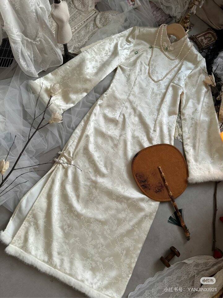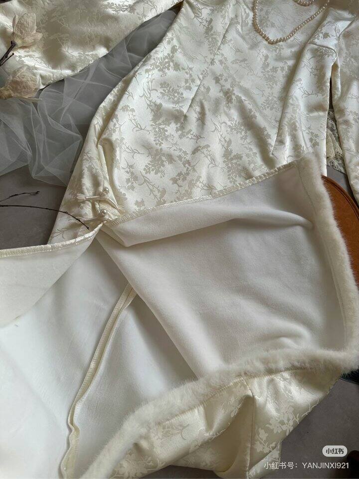栗子秋加绒加厚国风新中式带绒毛旗袍