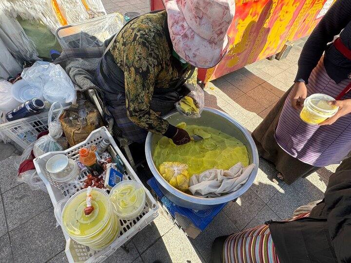 ⬇️寺门口的小吃,叫“朋必”,