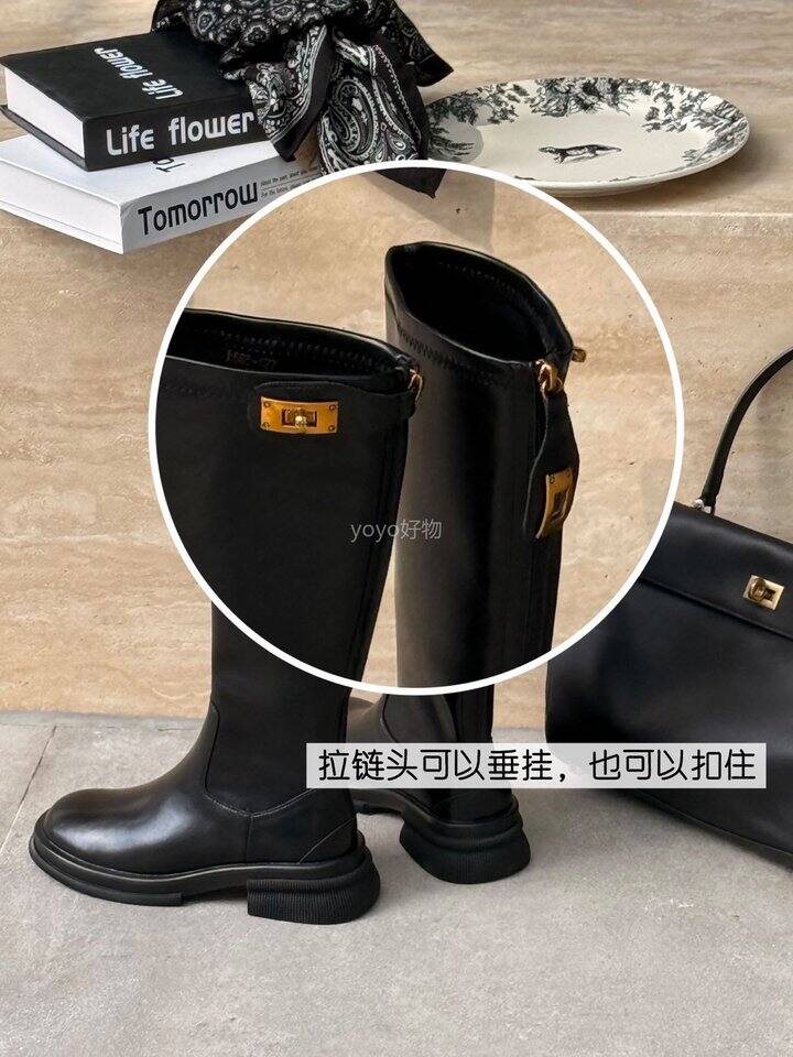 小金扣圆头骑士皮靴!💰149