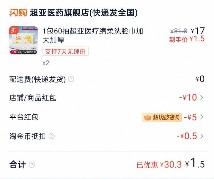 淘金币——淘宝闪购——搜索“超亚医药旗舰店”